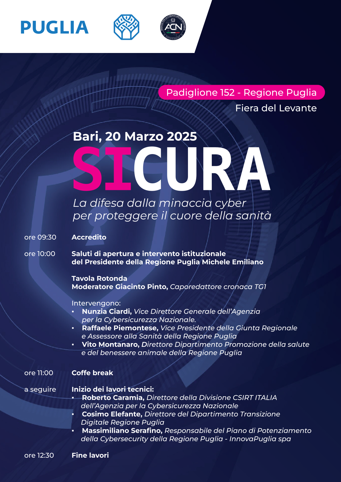 Organizzato dalla Regione Puglia in collaborazione con l'Agenzia per la Cybersicurezza Nazionale, la mattinata mira a rafforzare le conoscenze delle istituzioni regionali e dei dirigenti delle strutture interessate sull'importanza cruciale della cybersicurezza nel settore sanitario.