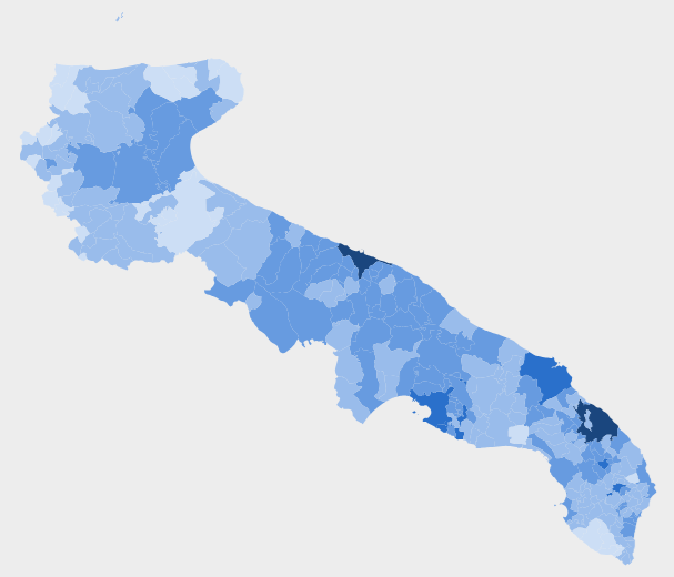 Reddito medio per contribuente nei comuni pugliesi. Anno 2024
