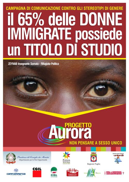 - Realizzazione di una campagna di sensibilizzazione realizzata attraverso tre manifesti esposti nel territorio di Union 3, lanciata con il messaggio "Non pensare a sesso unico"